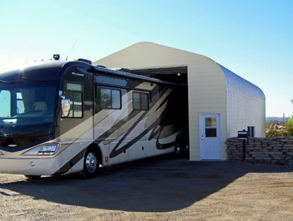 Mantenga los vehículos recreativos a salvo de los elementos y dañe la protección de acero prefabricada.