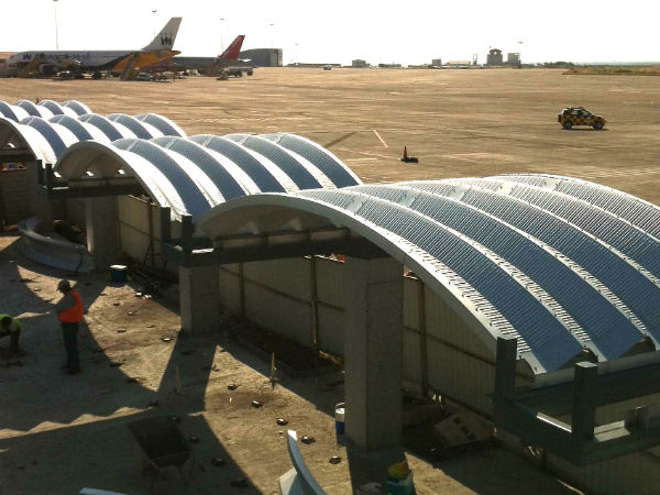 El primero imágen muestran el sistema de techado múltiple en el Aeropuerto Internacional Paphos en la costa suroccidente del país.