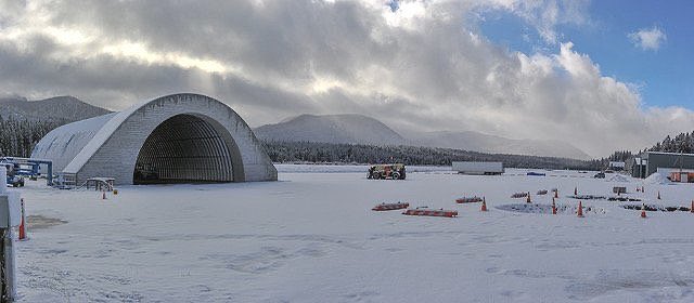 Después de decidir sobre un modelo Q de 60’W x 30’H x 100’L, la estructura fue entregada en la ubicación del set cerca del Lago Tahoe, California.
